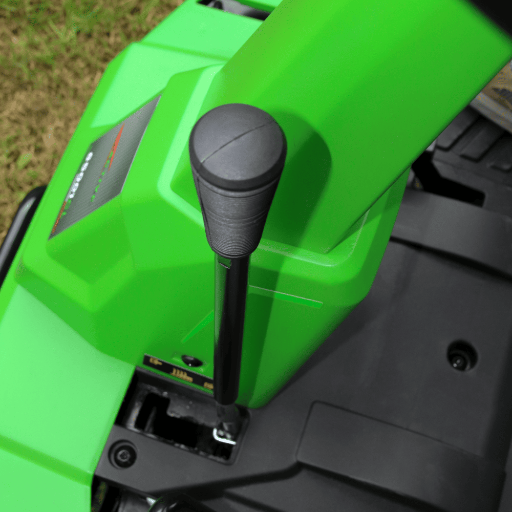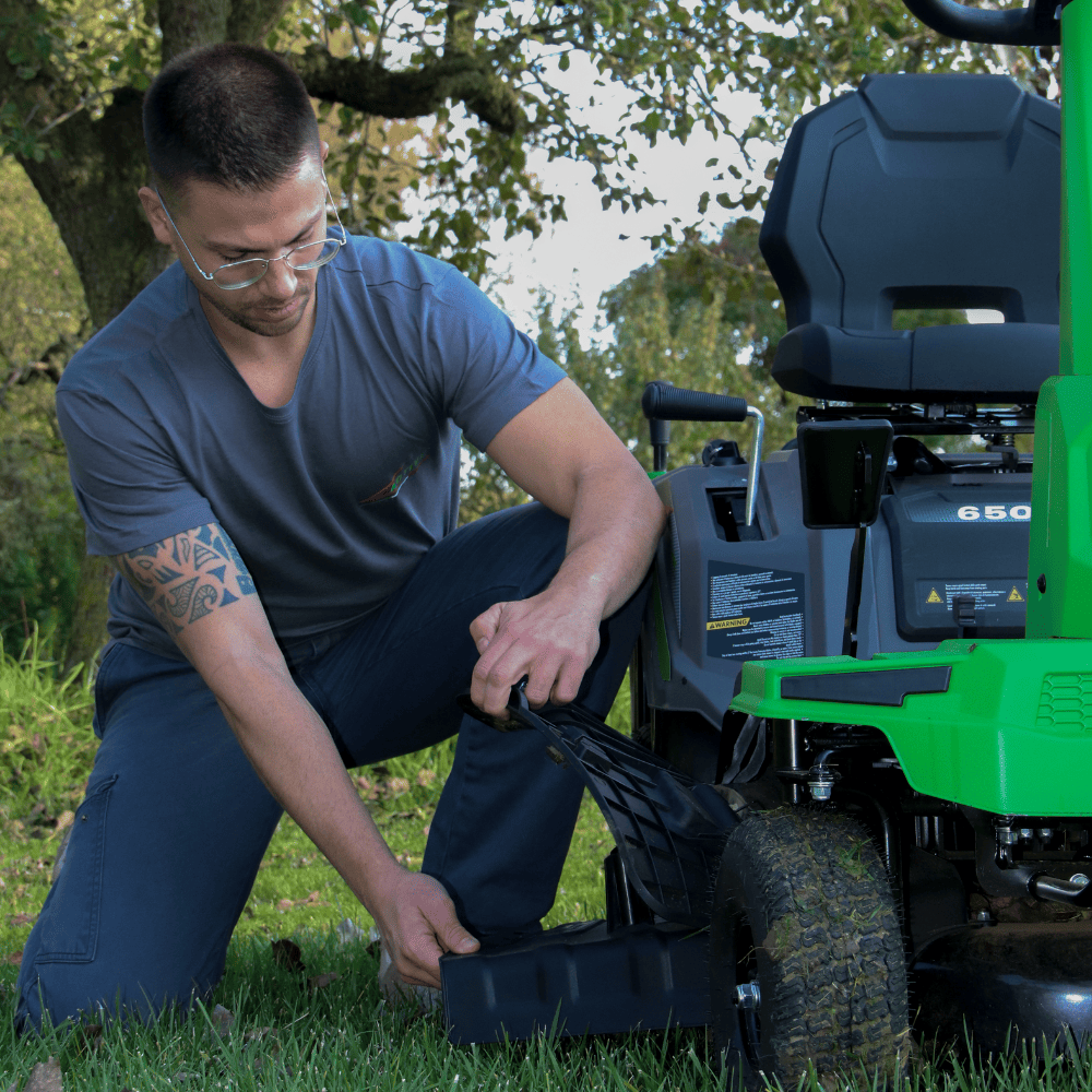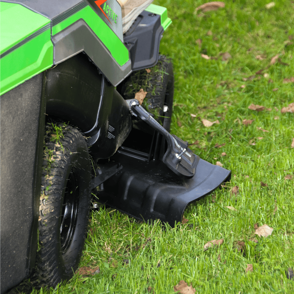 Il sistema di taglio consente di passare facilmente tra raccolta, scarico laterale e mulching, offrendo massima flessibilità nella gestione del prato.