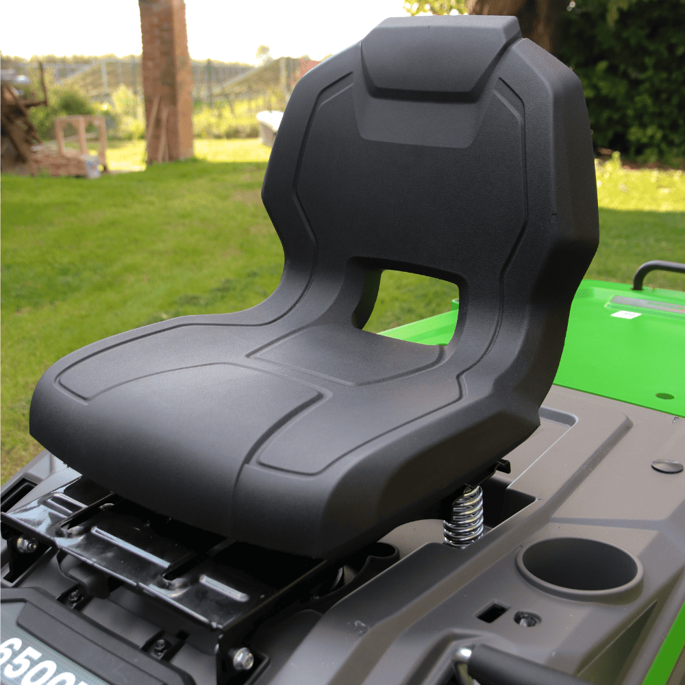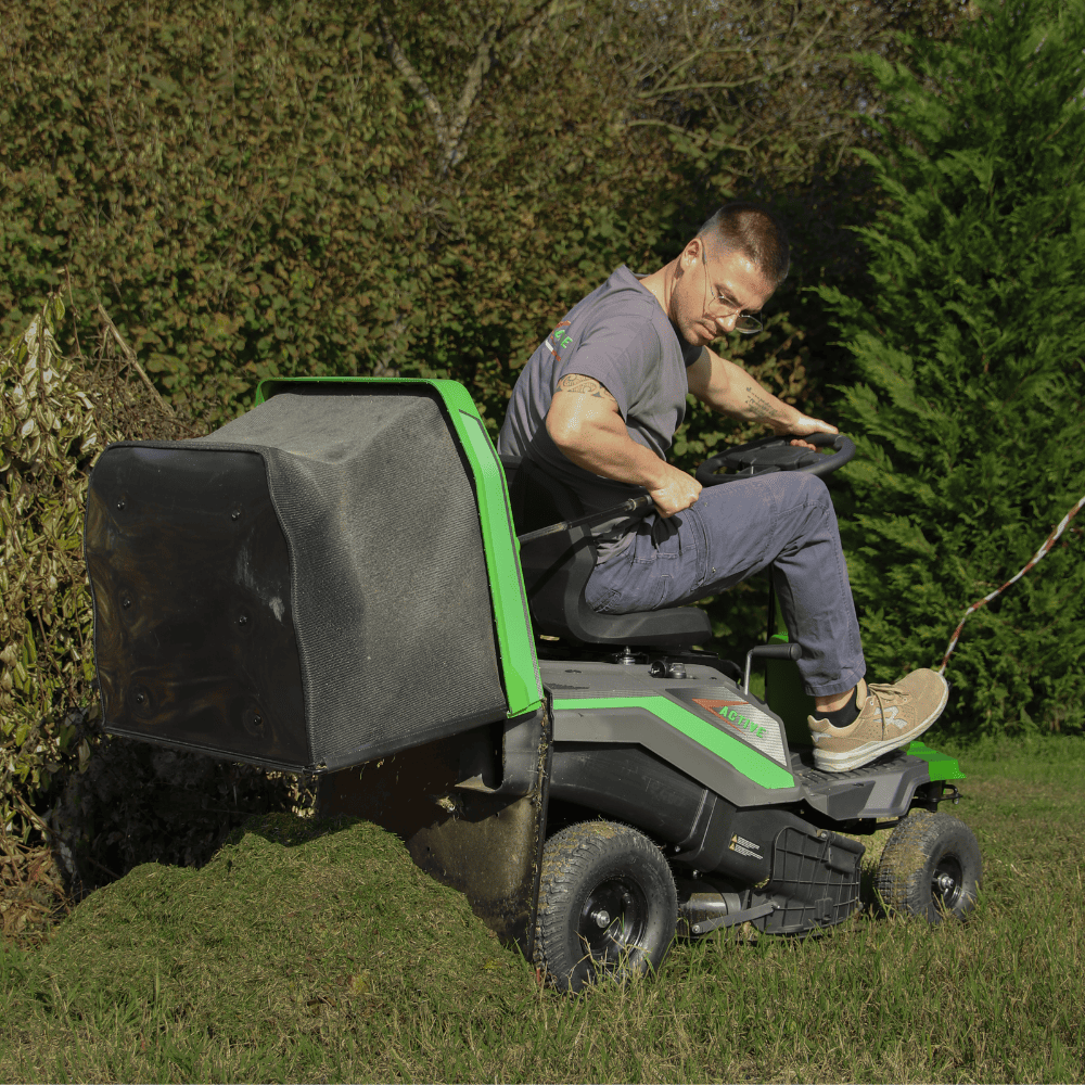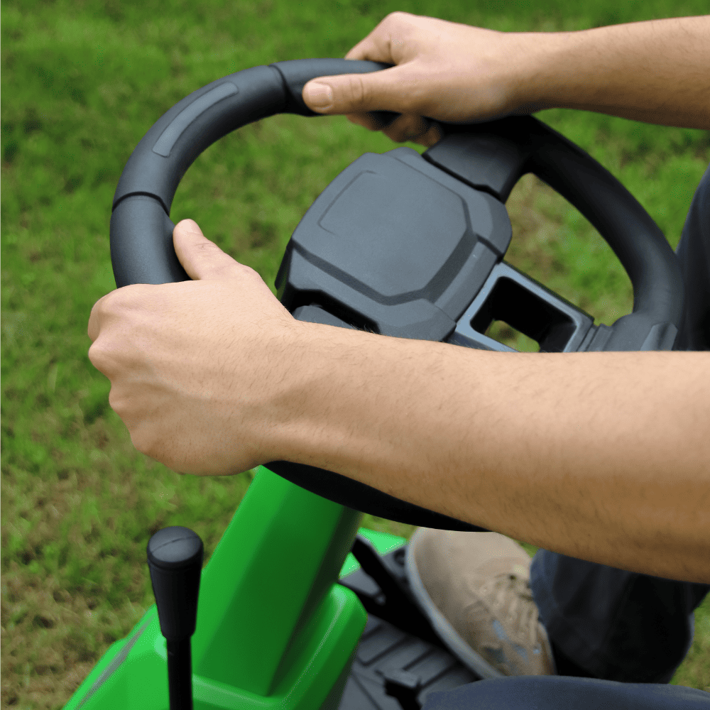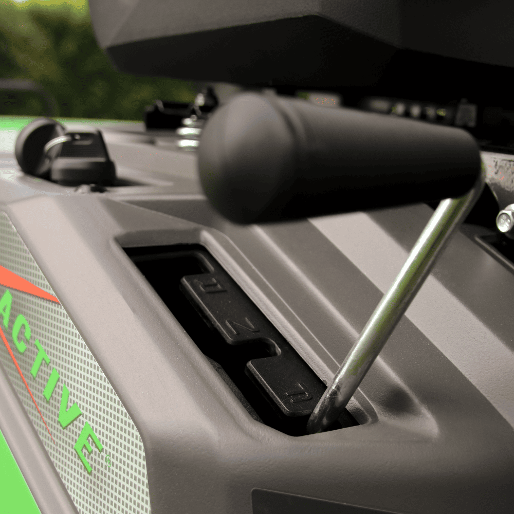 Il sistema di taglio consente di passare facilmente tra raccolta, scarico laterale e mulching, offrendo massima flessibilità nella gestione del prato.